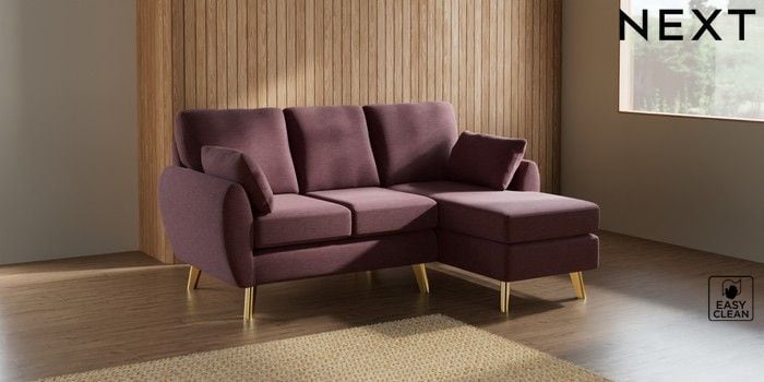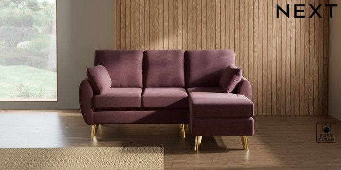7.3.1 Buy Wilson Small Sofa Chaise - Right Hand Fine Chenille Easy Clean Mid Mulberry Purple Metal Tapered - Gold from the Seasons online shop