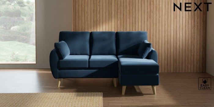 7.3.1 Buy Wilson Small Sofa Chaise - Right Hand Plush Velvet Easy Clean Airforce Blue Retro Tapered - Light from the Seasons online shop Click here to use our website with more accessibility support, for example screen readers