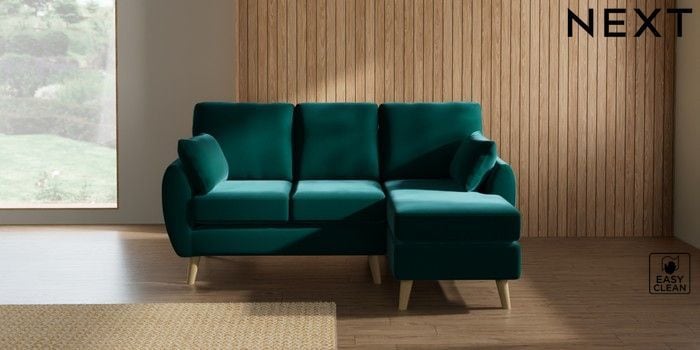 7.3.1 Buy Wilson Small Sofa Chaise - Right Hand Plush Velvet Easy Clean Juniper Green Retro Tapered - Light from the Seasons online shop Click here to use our website with more accessibility support, for example screen readers