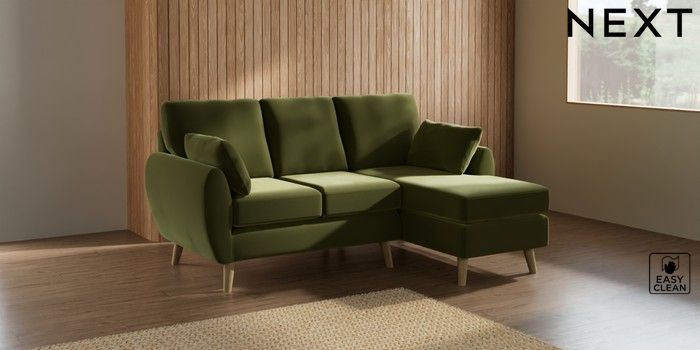 7.3.1 Buy Wilson Small Sofa Chaise - Right Hand Plush Velvet Easy Clean Mid Olive Green Retro Tapered - Light from the Seasons online shop Click here to use our website with more accessibility support, for example screen readers