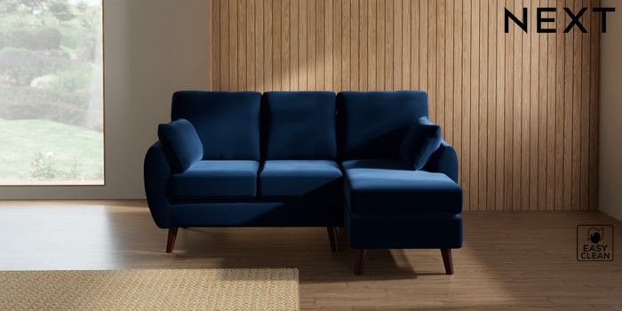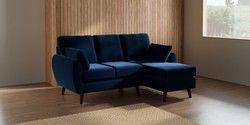 7.3.1 Buy Wilson Small Sofa Chaise - Right Hand Plush Velvet Easy Clean Navy Blue Retro Tapered - Dark Brown from the Seasons online shop