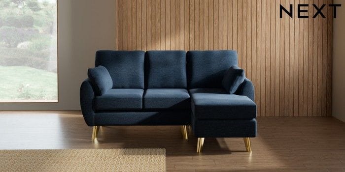 7.3.1 Buy Wilson Small Sofa Chaise - Right Hand Ripple Chenille Dark Blue Metal Tapered - Gold from the Seasons online shop Click here to use our website with more accessibility support, for example screen readers