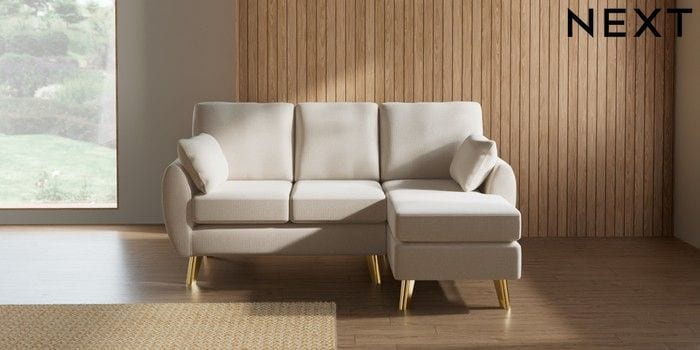 7.3.1 Buy Wilson Small Sofa Chaise - Right Hand Studio Chenille Oyster Metal Tapered - Gold from the Seasons online shop Click here to use our website with more accessibility support, for example screen readers