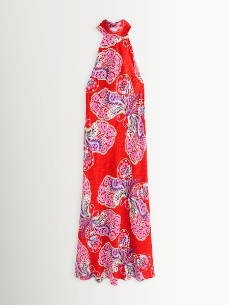 Butterfly Bloom Jacquard Red Maura Midi Dress