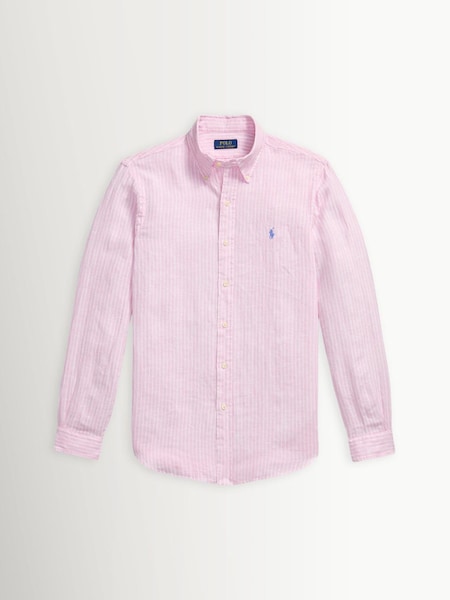 Pink & White Custom Fit Linen Stripe Shirt