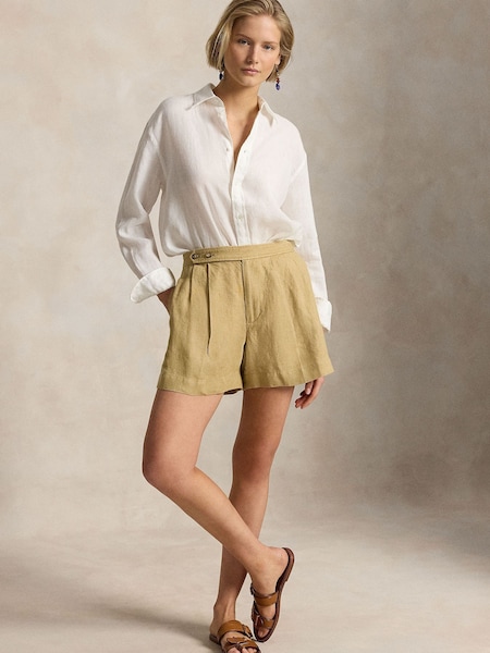 Brown Linen Pleat Top Shorts