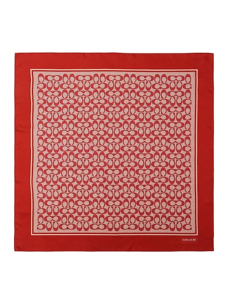 Red Vintage Signature C Printed Silk Square Scarve
