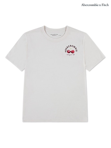 Abercrombie & Fitch White Cherry Boxy Short Sleeve T-Shirt
