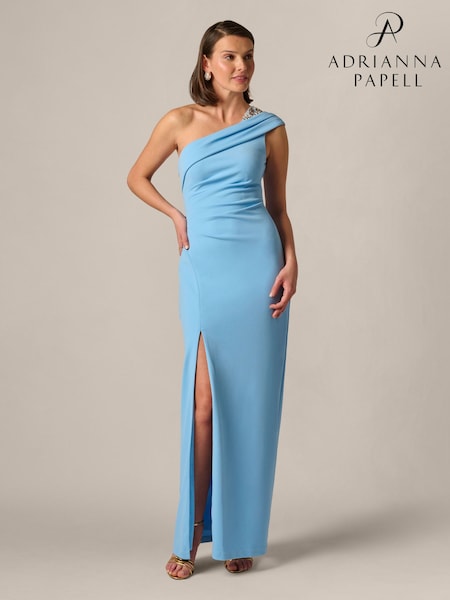 Adrianna Papell Blue One Shoulder Crepe Gown