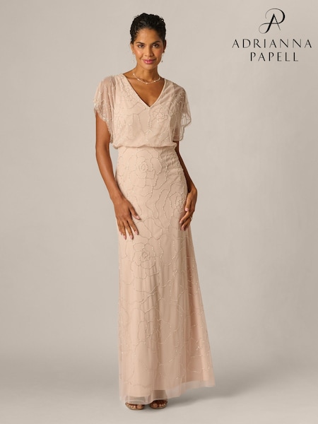 Adrianna Papell Pink Bead Blouson Long Dress