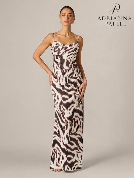 Adrianna Papell White Adrianna By Printed Satin Long Dress