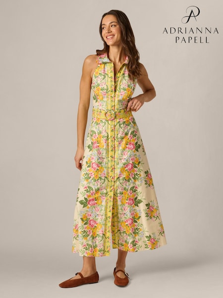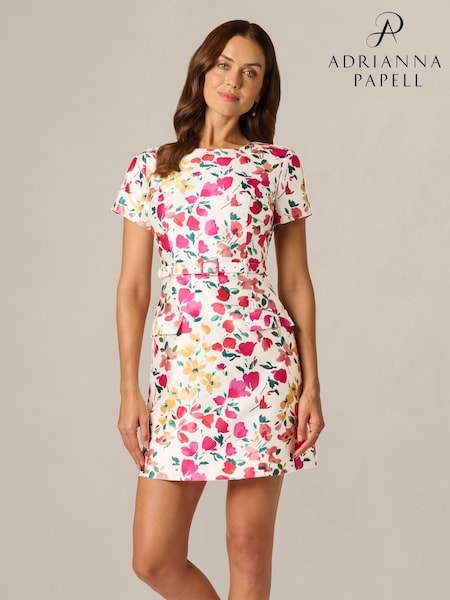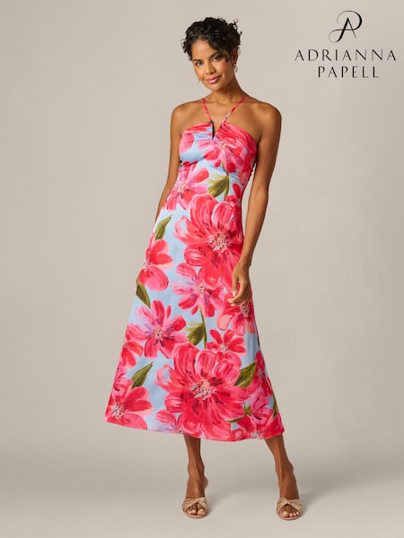 Adrianna Papell Blue Floral Crepe Ankle Dress
