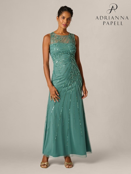 Adrianna Papell Green Studio Beaded Mesh Long Dress
