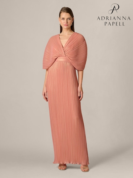 Adrianna Papell Pink Pleated Chiffon Long Dress