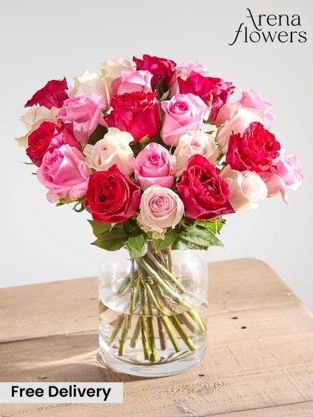 Arena Flowers 21 Mixed Pink Valentines Roses Fresh Flower Bouquet