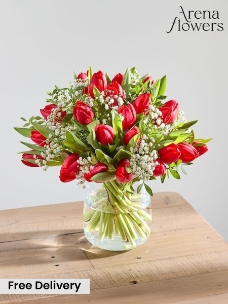 Arena Flowers Bright Spirit Tulips and Gypsophila Valentines Fresh Flower Bouquet
