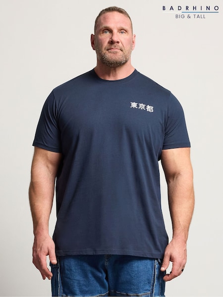 BadRhino Big & Tall Blue Longline Sword Split T-Shirt