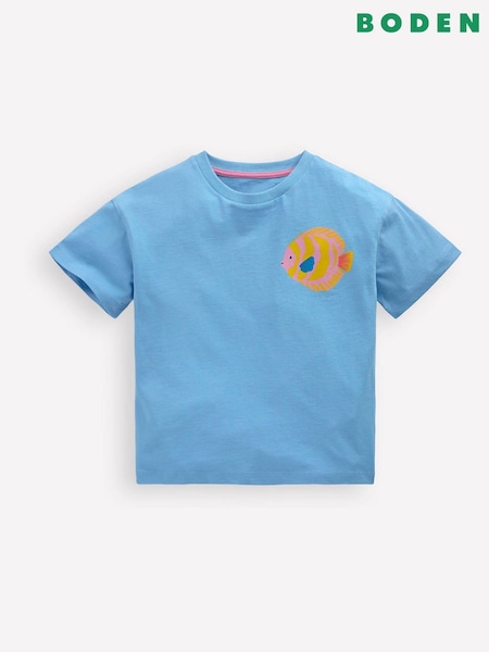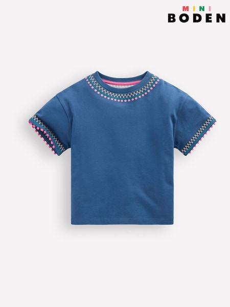 Boden Blue Relaxed Embroidered T-Shirt