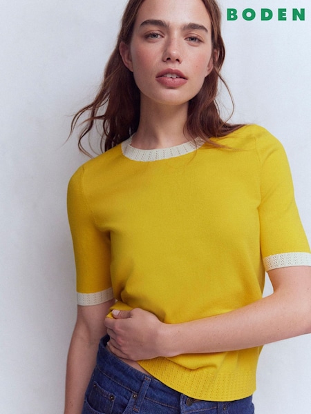 Boden Yellow Emilia Cotton Crew T-Shirt