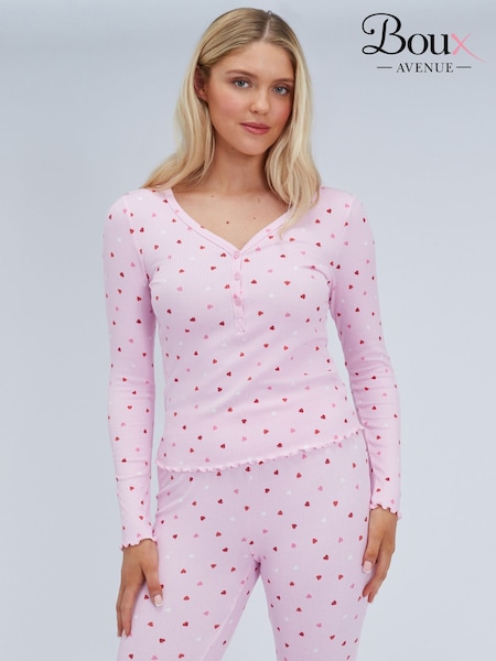 Boux Avenue Pink Heart Rib Henley Pyjamas Set
