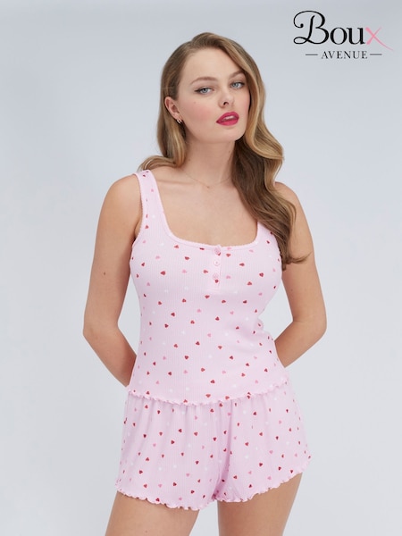 Boux Avenue Pink Heart Rib Short Pyjamas Set