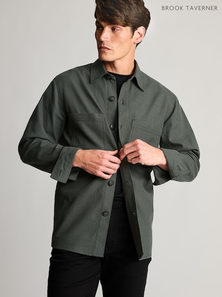 Brook Taverner Green Cotton Linen Overshirt