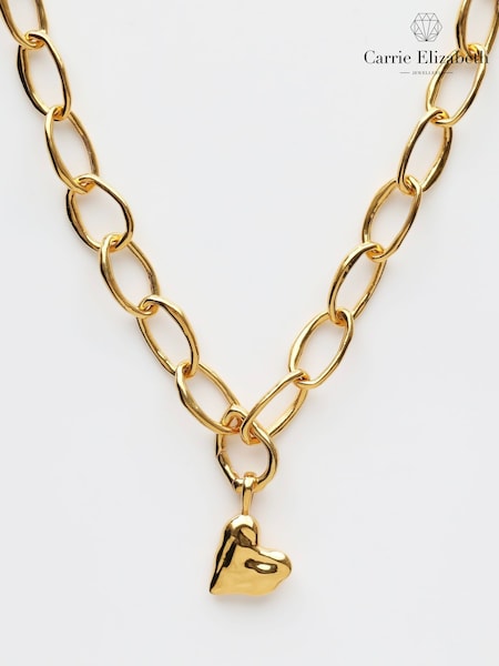 Carrie Elizabeth Gold Tone Molten Oval Opening Link Chain Necklace with Heartbeat Charm