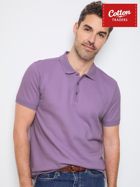 Cotton Traders Purple Short Sleeve Textured Rib Polo Shirt