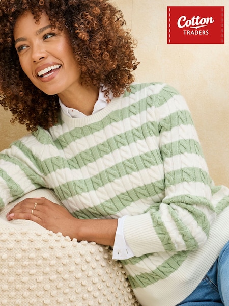 Cotton Traders Green Stripe Cutest Cable Jumper