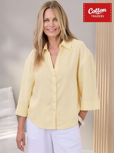 Cotton Traders Yellow Linen Blend Shirt