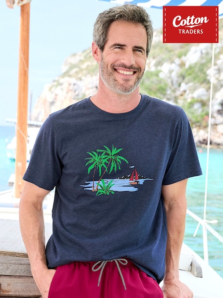 Cotton Traders Blue Printed T-Shirt
