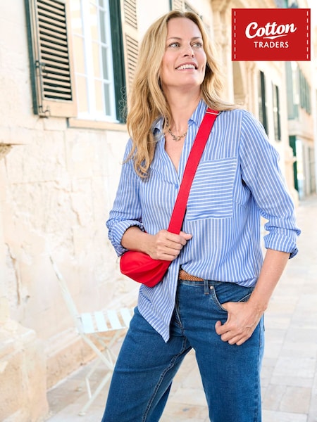 Cotton Traders Blue Relaxed Fit Stripe Shirt