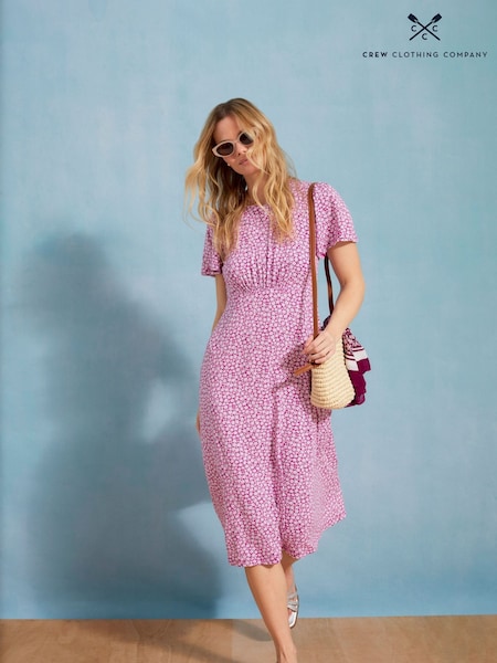 Crew Clothing Pink Jenna Flutter Sleeve Jersey Dress