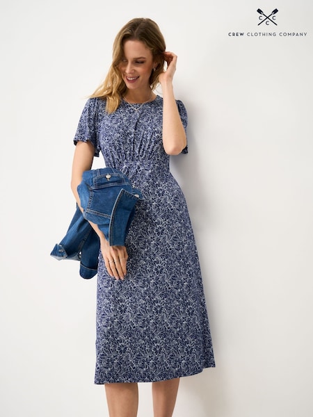 Crew Clothing Blue Jenna Flutter Sleeve Jersey Dress