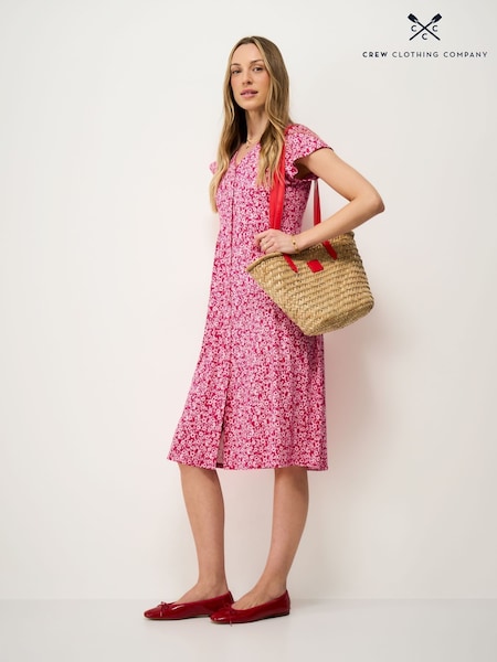 Crew Clothing Pink Alyssia Button Through Meadow Floral Jersey Dress