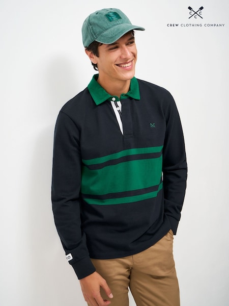 Crew Clothing Blue Long-Sleeve Wide Stripe Rugby Shirt