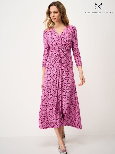 Crew Clothing Pink Flora 3/4 Length Sleeve Printed Jersey Dress