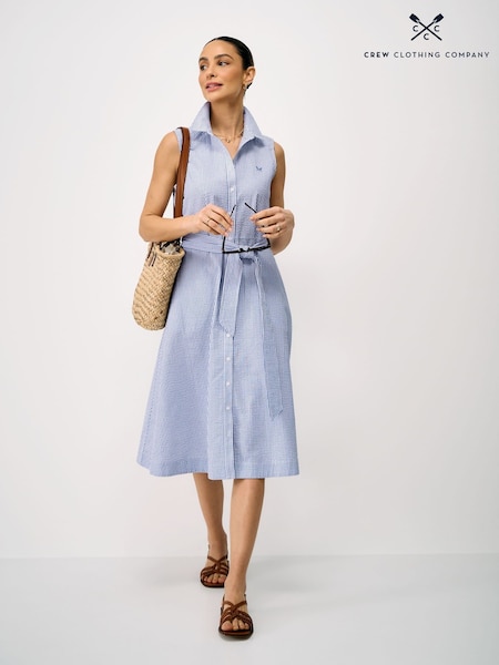 Crew Clothing Blue Dara Sleeveless Shirt Dress