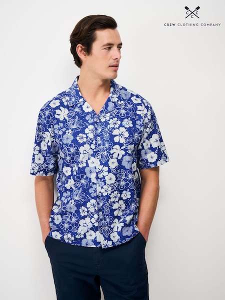 Crew Clothing Blue Linen Blend Revere Shirt