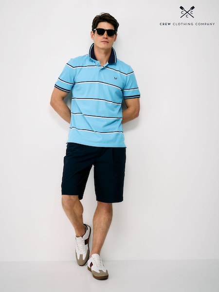 Crew Clothing Blue Pique Cotton Oxford Fine Stripe Polo Shirt