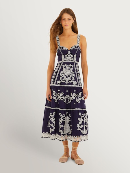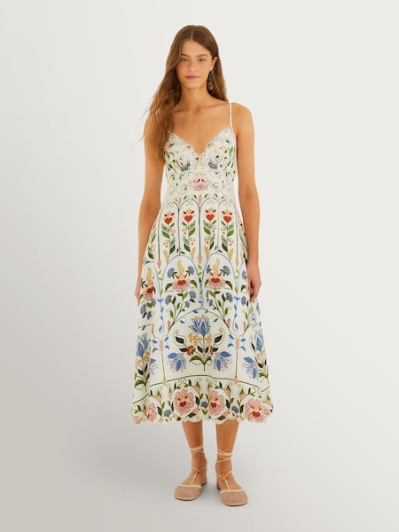 Farm Rio Blue Flora Tile Off-White Maxi Dress