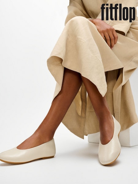 FitFlop Cream Delicato High-Cut Soft-Leather Ballet Flats