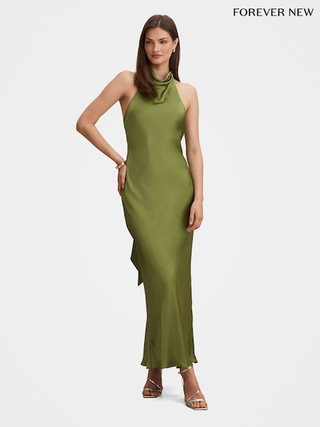 Forever New Green Clementine High Neck Satin Maxi Dress