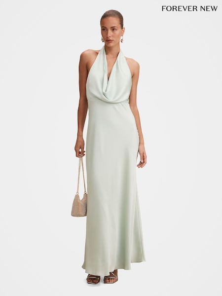 Forever New Green Becca Cowl Halter Neck Satin Gown