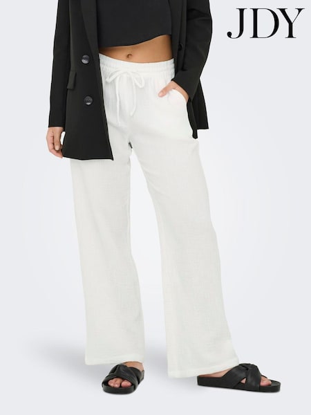 JDY Cream Pull On Wide Leg Trousers With Linen