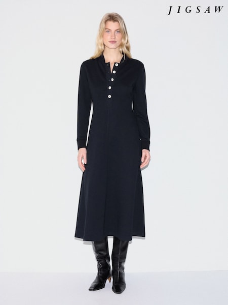 Jigsaw Blue Heavy Jersey Button Dress