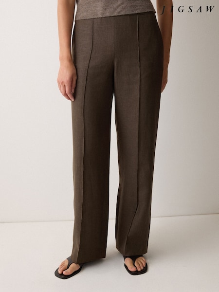 Jigsaw Brown Irish Linen Palazzo Trousers