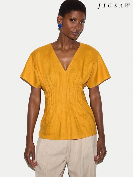 Jigsaw Orange Linen Pintuck Waist Top