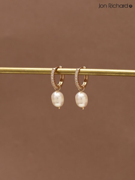 Jon Richard Gold Tone Real Freshwater Pearl Huggie Earrings