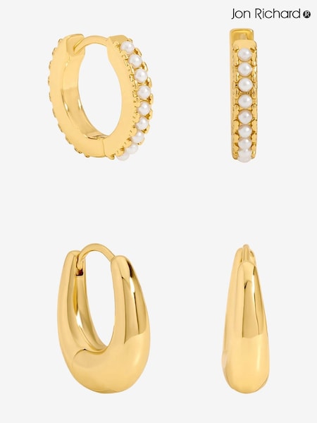 Jon Richard Gold Tone Polished and Pearl Hoops Pack of 2
